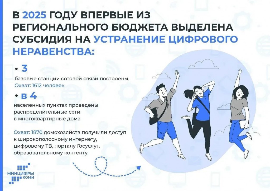 «2026-й – Год села в Коми и Год единства народов России. Качественная связь в каждом уголке республики – это равные возможности для всех. И учёба, и работа, и просто разговор с близкими – всё это должно быть доступно независимо от расстояния до города», - отметил (https://max.ru/goldshtein_komi/AZyPFY27bSk)) в своём MAX-аккаунте Глава Республики Коми Ростислав Гольдштейн.